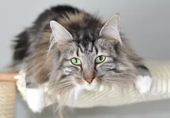 Amiś – nasz pierwszy kociak NFO… Przez niego zaraziliśmy się „norwegozą” i nagle okazało się, że jest to schorzenie bardzo oporne przy klasycznym leczeniu. Spróbowaliśmy leczenia alternatywnego – podobne leczyliśmy podobnym – w tym przypadku okazało się, że wzięte pod dach kolejne kocięta norweskie tylko pogłębiają chorobę, a leczenie jest po prostu nieskuteczne… Amiś jest niezwykle czarującym kotem norweskim leśnym, o magnetycznym spojrzeniu szmaragdowych oczu. Nasze kochane żywe sreberko, zawsze wesołe i skore do zabawy, to od jego imienia powstało w naszym domu sformułowanie „amisiować”, czyli… rozrabiać! Niby taka cicha woda, ale brzegi potrafi rwać!!!
